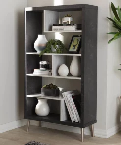Baxton Studio Atlantic Brown and Light Grey Two-Tone Finished Wood Display Shelf