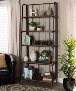 Baxton Studio Ceren Wood and Black Metal Finished 5-Tier Living Room Ladder Shelf