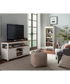 Alaterre Furniture Savannah Tall Bookcase, Ivory with Natural Wood Top