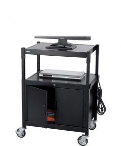 Safco Av Cart w/Cabinet, Adjust., 26-3/4"x20-1/2"x26-42", Steel/Black