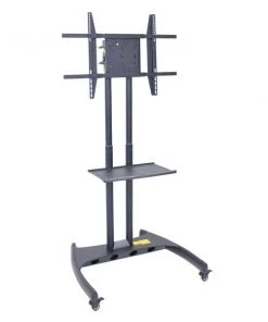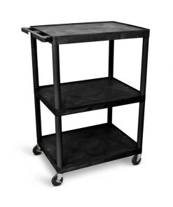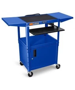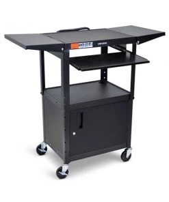 Luxor Adjust-Height Steel AV Cart, Pullout Keyboard Tray, Cabinet, Drop Leaf
