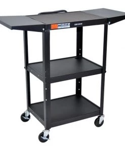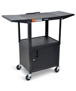 Luxor Adjustable-Height Steel AV Cart with Cabinet and Drop Leaf