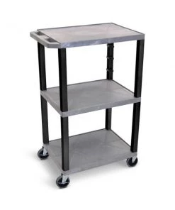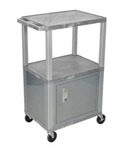 Luxor Gray Tuffy 3 Shelf 42" AV Cart with Black Legs, Cabinet & Electric