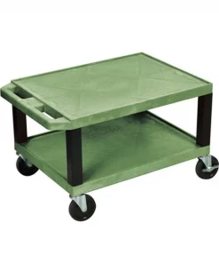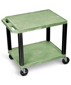 Luxor Tuffy Green 2 Shelf AV Cart with Black Legs & Electric