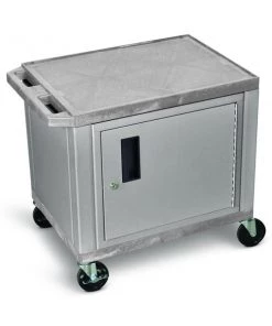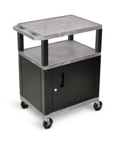 Luxor Tuffy Gray 3 Shelf AV Cart with Black Legs, Cabinet & Electric