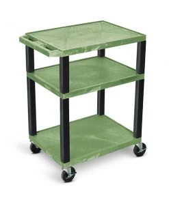 Luxor Tuffy Green 3 Shelf AV Cart with Black Legs & Electric