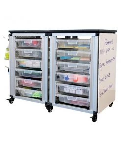 Luxor Modular Classroom Storage Cabinet – 2 side-by-side modules with 6 large bins