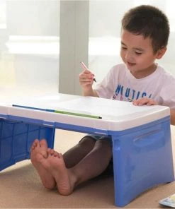 Basicwise Kids Portable Fold-able Plastic Lap Tray, Blue and White