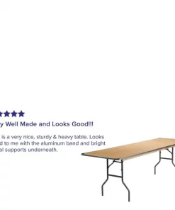 Flash Furniture Rectangle Folding Table, 30" W, 96" L, 30" H, Wood Top, Wood Grain