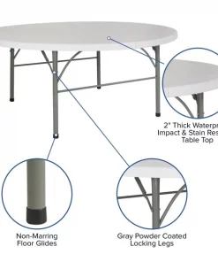 Flash Furniture Round Wh 72Rnd Plastic Fold Table, 71" W, 71" L, 29" H, Plastic Top, White