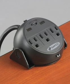 Safco Training Table Power Module, 8" Cord, USB, Steel Clamp, BK