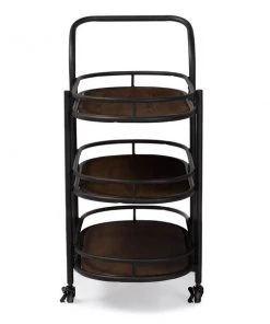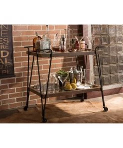 Baxton Studio Kennedy Black Finished Metal Distressed Wood Mobile Serving Cart