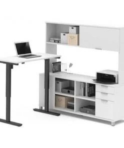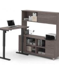 Bestar Adjustable Table, 70 29/32 in D, 71 7/64 in W, Antigua, Melamine, Polyvinyl Chloride Edge