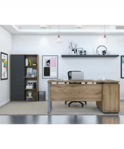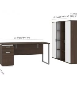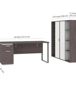 Bestar Adjustable Table, 70 29/32 in D, 71 7/64 in W, Antigua, Melamine, Polyvinyl Chloride Edge