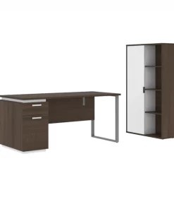 Bestar Aquarius 36W Storage Unit with 8 Cubbies, Walnut Grey & Slate