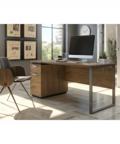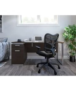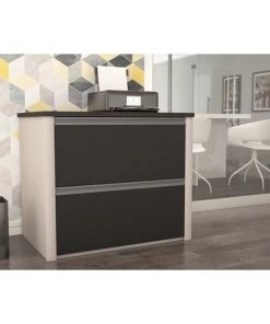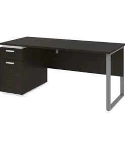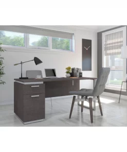 Bestar Aquarius Bookcase with Sliding Door, Rustic Brown/Graphite
