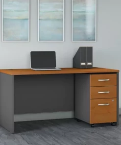 Bush Business Furniture Series C 60W x 30D Office Desk W/ 3 Drawer Mobile File Cabinet, Mahogany