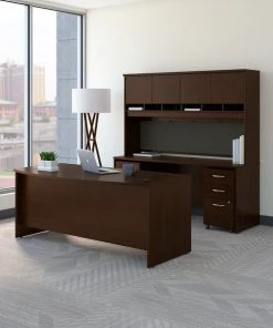 Bush Business Furniture Series C Bow Front Desk W/ Credenza, Hutch and Storage in Mocha Cherry