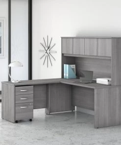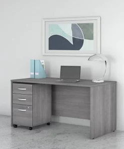 Bush Business Furniture Studio C 60W x 30D Office Desk W/ Mobile File Cabinet in Platinum Gray