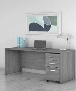 Bush Business Furniture Studio C 72W x 30D Office Desk W/ Mobile File Cabinet in Platinum Gray