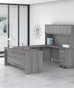 Bush Business Furniture Studio C 72W x 36D U Shaped Desk W/ Hutch and Mobile File Cabinet, White