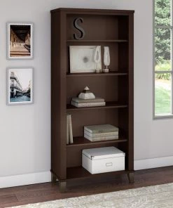Bush Furniture Somerset Tall 5 Shelf Bookcase in Mocha Cherry