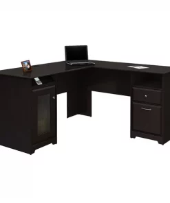 Bush Furniture Cabot L Shaped Desk W/ Hutch, Lateral File Cabinet and 5 Shelf Bookcase, Espresso Oak