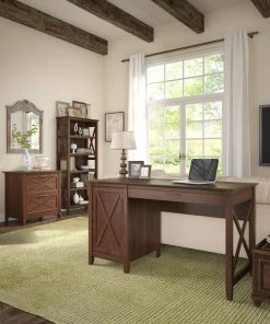 Bush Furniture Cabot L Shaped Desk W/ Hutch, Lateral File Cabinet and 5 Shelf Bookcase, Modern Gray