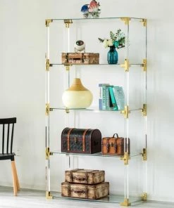 Fabulaxe Acrylic Gold Metal Modern 4 Shelf Etagere Bookcase with Glass Shelves
