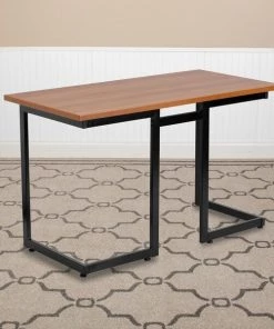 Flash Furniture Computer Desk, 27-1/2" D, 55" W, 29-3/4" H, Frosted/Cherry, Metal, Table Top: Glass