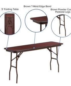 Flash Furniture Rectangle Training Table, 18" X 60" X 30", Laminate Top, Wood Grain