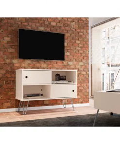 Manhattan Comfort Baxter 35.43" TV Stand with 4 Shelves in Off White