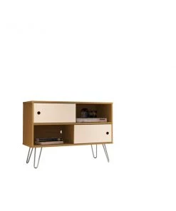 Manhattan Comfort Baxter 35.43" TV Stand with 4 Shelves in Off White and Cinnamon