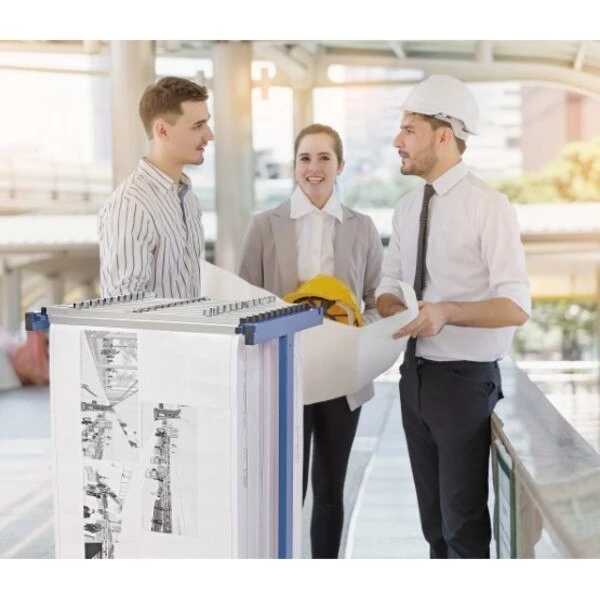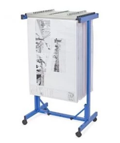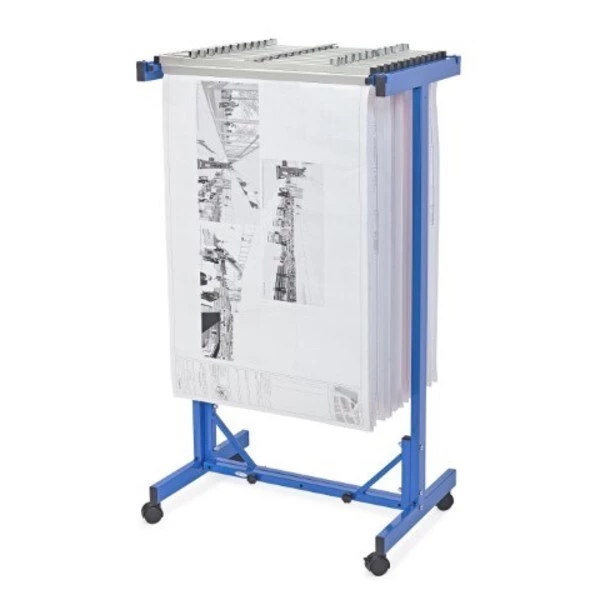 The AdirOffice Expandable Blueprint Mobile Plan Center lets you easily roll your files anywhere, anytime. Simply drop the files in and lift them out, as needed. Composed of heavy gauge steel with ball bearing swivel casters (2 with brakes), this unit allows for up to 18 hanging clamps with adjustable widths of 24 in to 42 in. (Clamps are sold separately). The stand is simple to set up and simple to use.
