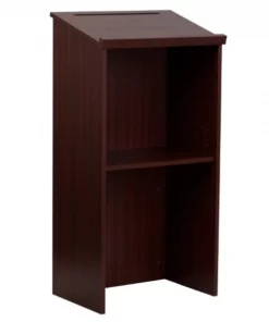 The AdirOffice Mahogany Lectern is the best choice for conference rooms, meeting halls, congregations and classrooms. The podium features a slanted top that will prevent papers and books from sliding and a pencil slot to keep writing utensils at hand. The adjustable shelf will allow you store AV equipment or any other items.