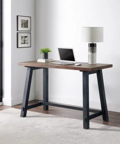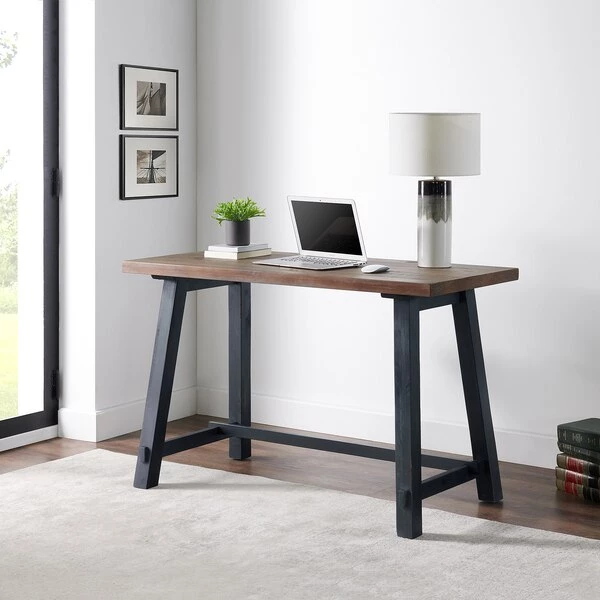 Add a unique touch to your home with this desk. The lightly distressed black sawhorse leg design gives it a rustic, yet industrial feel. The solid wood top finish highlights natural wood variations such as cracks and knots which add to the piece's character. This collection is sure to make a statement in your home. This desk is sure to give your workspace a stylish touch, while also giving you plenty of space to tackle your to-do list.