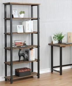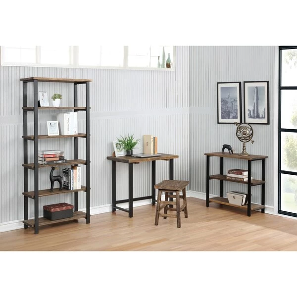 The Pomona collection features the exquisite workmanship of a solid wood top with metal legs that will last for years to come. Each piece is constructed of solid pine wood and finished to have the appearance of reclaimed wood. The reclaimed wood finish highlights natural wood variations such as cracks and knots which add to the piece's character. Any item in this collection will add to the rustic industrial style of any space. At over 5.5ft. tall, our solid birch wood bookcase with strong black metal legs offers modern farmhouse style to display your books and favorite decorative items.