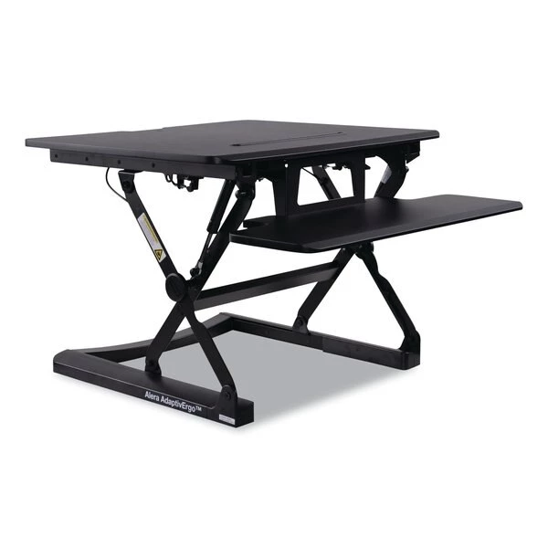 These lifting workstations turn any desk into an ergonomic sit-stand station. Raise and lower with ease within a 19.69" range. Two-tiered worksurface and keyboard/mouse platform for better ergonomics. Platform's rear-notched design accommodates most monitor arms. Neatly route cables behind display. Designed specifically for use with the Alera® Monitor Arms. Smart space-saving design stays within your desk space and raises vertically within the same plane. No having to step back and out when in the raised position. Reinforced base for stability at any height. Will not flip or height-drop even when leaning on the workstation.