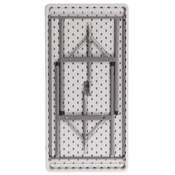 1.75" inch table top thickness with a weight capacity of 330 lbs. Foot glides to protect against damage to floors. 16 gauge steel legs fold and lock underneath table top.