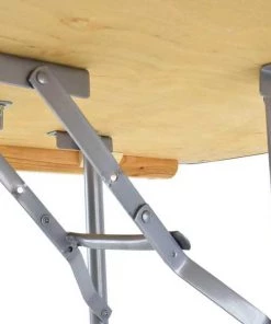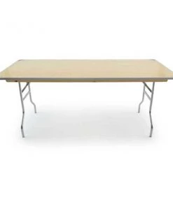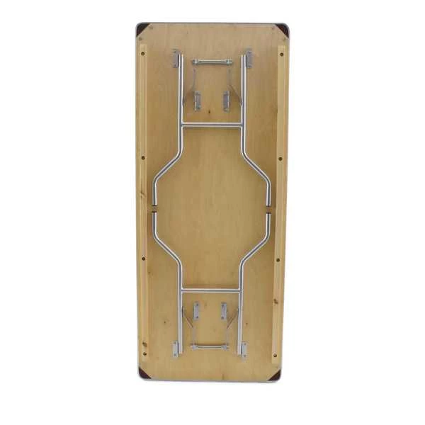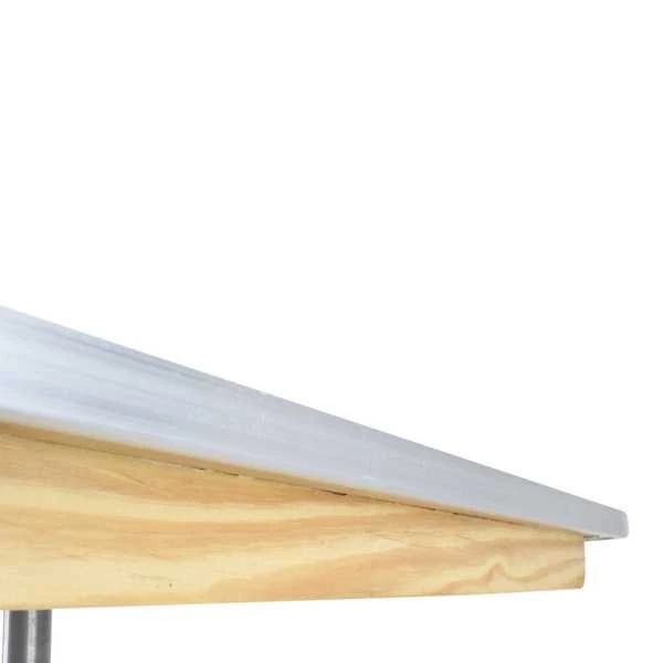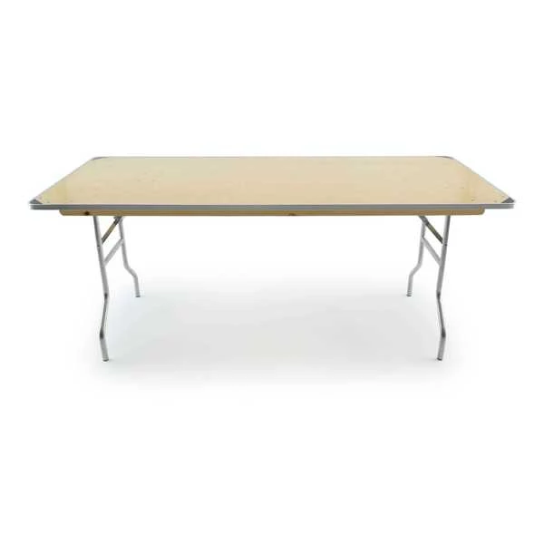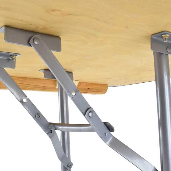 Heavy Duty Birchwood table top with polyurethane finish. Rugged metal edging prevent damage with rolling, stacking or storing. Commercial grade quality.
