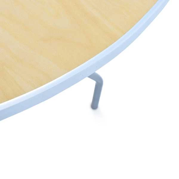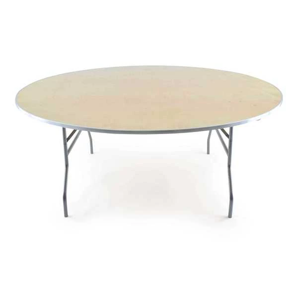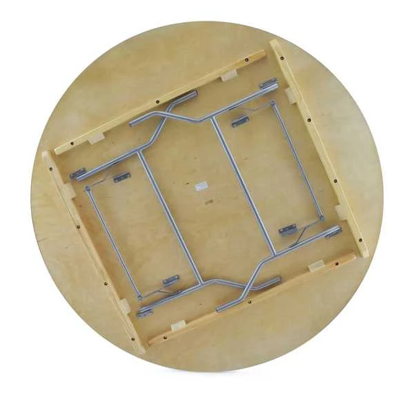 Heavy Duty Birchwood table top with polyurethane finish. Rugged metal edging prevent damage with rolling, stacking or storing. Commercial grade quality.