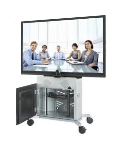 Luxor Adjustable-Height Steel AV Cart with Pullout Keyboard Tray and Cabinet