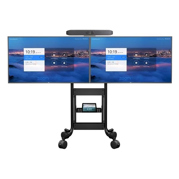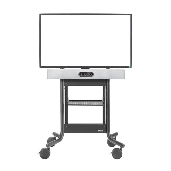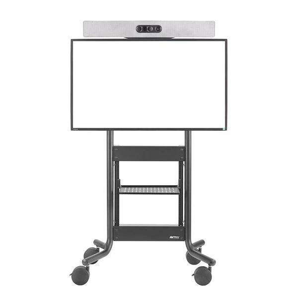 Luxor Adjustable-Height Steel AV Cart with Pullout Keyboard Tray and Cabinet