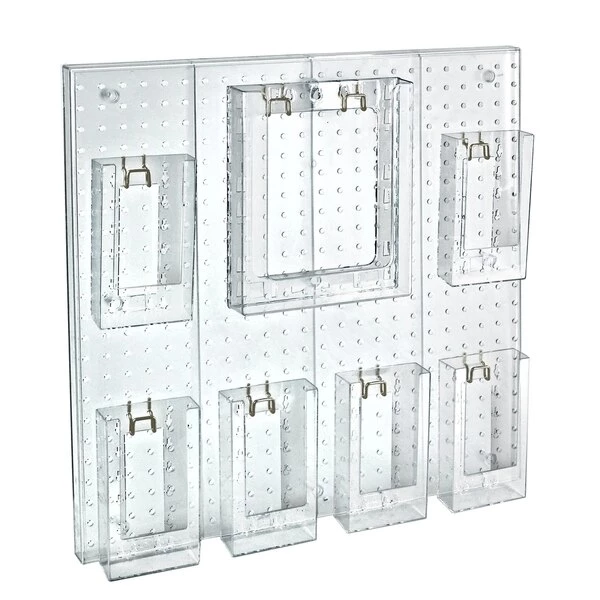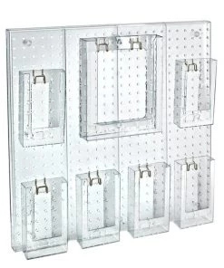 Azar Displays Seven Pocket Multi-Tier Modular Wall Brochure Holders are very stylish and ideal for displaying trifold brochures, pamphlets, letter size flyers or magazines on your wall. These multi-pocket organizers has six pockets that hold a standard Tri-Fold literature, ideal for size 4”W x 8.5" H brochure, and 1 pocket that holds letter size reading material ideal for size 8.5”W x 11”H. The Pamphlet holder is the perfect solution to display your reading materials vertically in small or crowded locations where there is not enough counter, shelf or tabletop space. Presenting information to your potential customers is essential to your success. That’s why it’s important to keep your reading material within reach using these practical and versatile Azar Marketing Holders. Great to use these literature dispensers for a wide range of messaging, advertising, or marketing. Keep your printed materials in a neat and organized arrangement and your counter space clutter-free. Give your professional environment a modern and sleek look that will complement any décor. Place this pamphlet flyer display in a main location within your business to create a common area for customers to visit and access your important take-home reading materials. Ideal to place in doctor offices, government and business offices, community centers, travel agencies universities, convention centers, café’s, real estate offices, stadiums, convenience stores, museums, hotels, airports, schools, retail stores, lobbies and so much more! These premium acrylic brochure pockets are injection molded, creating a strong, durable, and crystal-clear appearance. The Clear Frosted Pegboard is 24" x 24" and the 6 tri-fold brochure pocket sizes are 4.375” w x 7.875” h and the 1 Letter size brochure pocket is 9.125” w x 11.25” h. Hardware Included to hang the brochure pockets on the pegboard and screws are included for hanging pegboard to the wall. These brochure racks are available in 7 pocket and 10 designs. Easy to Assemble. Sold in packs of 1.