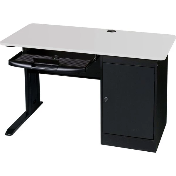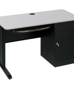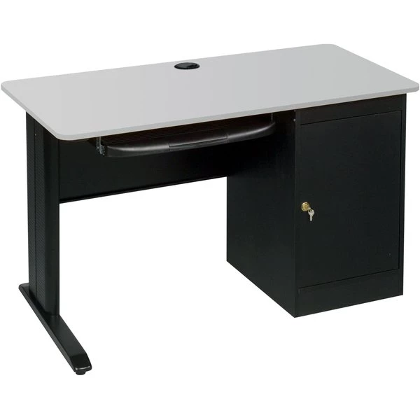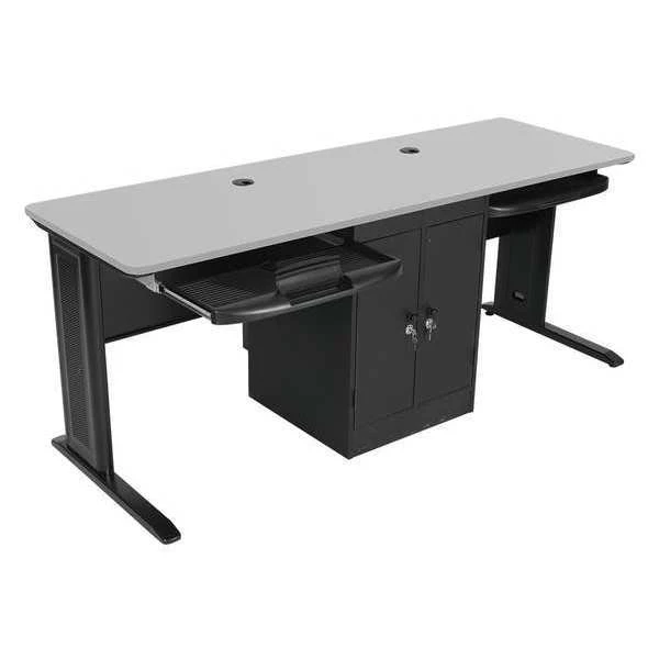 Computer Workstation, LX Series, Overall Width 72 in, Overall Height 29 in, Overall Depth 24 in, Number of Pedestals 1, Pedestal Location Right, Number of Drawers 0, Pedestal Style Full, Keyboard Shelf Yes, Color Base Black, Color Top Gray, Base Material Steel and Laminate CPU Cabinet, Top Material Vacuum-Formed PVC, No Handle, Assembly Required, Standards TAA Compliant, Includes CPU Shelf, Keyboard Shelf