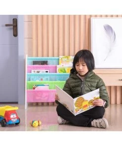 Children need to play and learn for their development. That's why we created these 4 tiered magazine racks, keeping in mind to perfectly accommodate kids learning interest so that storing books and spotting titles are easier for grabs as well as organizing. Bright colored rack linings create a decorative appeal to kids playroom collection and sturdy frame and lining make cleaning easier and more resilient for continual use. So choosing fun and playful storage ideas to decorate and organize kids books is that simple.