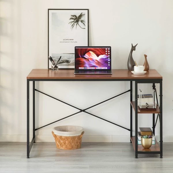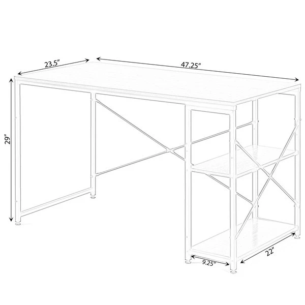 Create the perfect desk area with this computer office desk. Industrial and modern design fits into any style room décor. Spacious desktop provides plenty of workspace for your laptop, notebooks, and other office supplies. Additionally includes two side storage shelves to keep office supplies handy. Composed out of durable wood, this computer desk offers a sturdy base to hold office essentials neat and organized. Everything you need for assembly and installation is included, and the assembly guide makes it easy to set up.