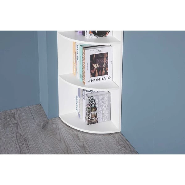Keep your books accessible and neat in this 4 tier book shelf. This 4- tiered bookcase is durable enough to hold plenty of stackable books, magazines, or trinkets. For book lovers, this tree bookrack will keep reading material neatly coordinated, super accessible, and uniquely displayed. In office settings, the shelves can be piled with files, books, or office decor. Plus, this can be used to showcase pottery, pictures, and plants. Simple design with endless possibilities.