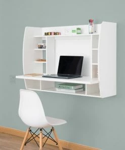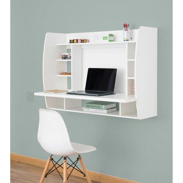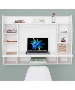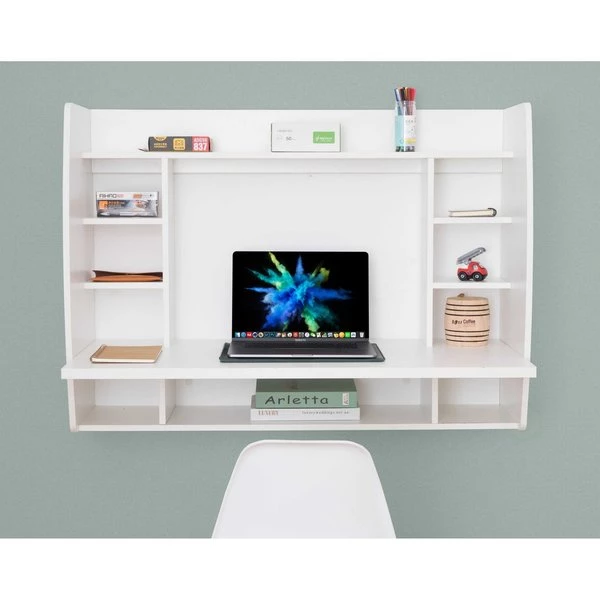 Create the perfect desk area with this wall mounted laptop desk. Plenty of shelves provides extra surface space to store office items and trinket display. Composed out of durable wood, this desk offers a sturdy base to hold office essentials neat and organized. Practical working spaces start with this wall mounted desk.