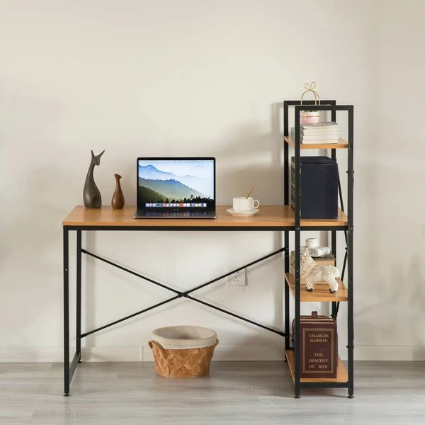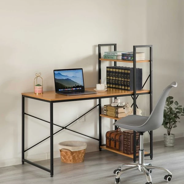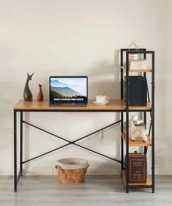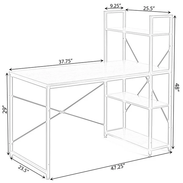 Create the perfect desk area with this computer office desk. Industrial and modern design fits into any style room décor. Spacious desktop provides plenty of workspace for your laptop, notebooks, and other office supplies. Additionally includes three side storage shelves to keep office supplies handy. Composed out of durable wood, this computer desk offers a sturdy base to hold office essentials neat and organized. Everything you need for assembly and installation is included, and the assembly guide makes it easy to set up.